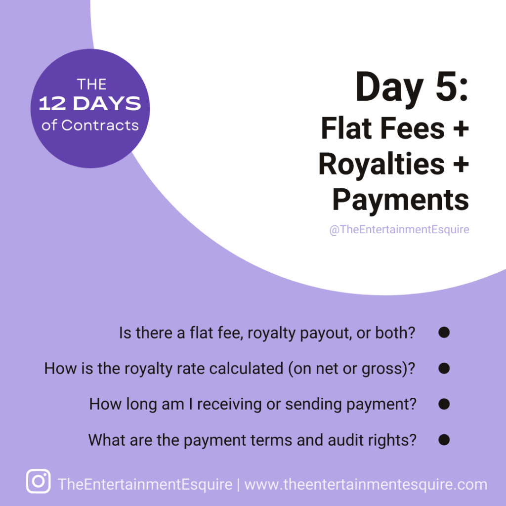 5 thoughts on “12 Days of Contracts – Day 5- Flat Fees + Royalties+ Payments”