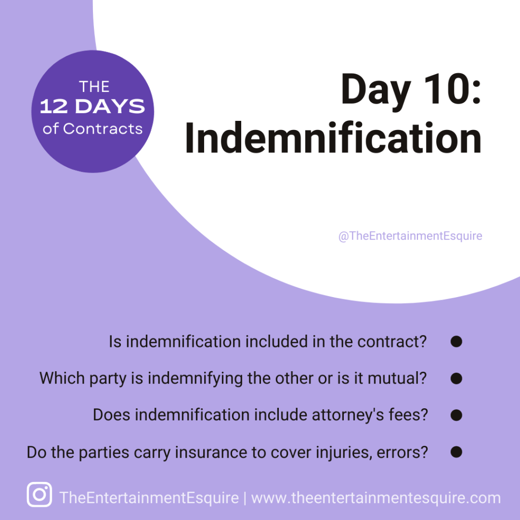 IF YOU MISSED IT, SEE DAY 9 (TERMINATION) HERE | IF YOU MISSED IT, SEE DAY 8 (DELIVERY) HERE | IF YOU MISSED IT, SEE DAY 7 (SCOPE) HERE | IF YOU MISSED IT, SEE DAY 6 (RIGHTS) HERE | IF YOU MISSED IT, SEE DAY 5 (FEES) HERE | IF YOU MISSED IT, SEE DAY 4 (TERRITORY) HERE | IF YOU MISSED IT, SEE DAY 3 (TERM) HERE | IF YOU MISSED IT, SEE DAY 2 (ELEMENTS) HERE | IF YOU MISSED IT, SEE DAY 1 (PARTIES) HERE